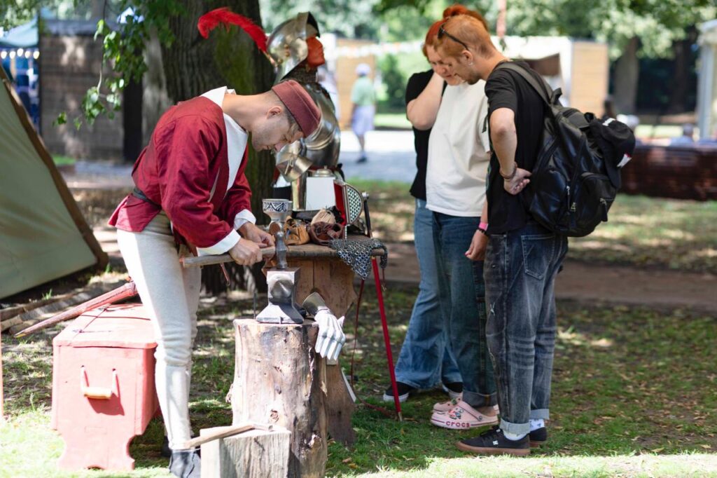 Поляну около Центральной аллеи острова им. Иммануила Канта заняли рыцари в аутентичных доспехах, выставка средневекового оружия и предметов быта. Гости учились танцевать, слушали музыку рыцарских времен и примеряли их одеяния.